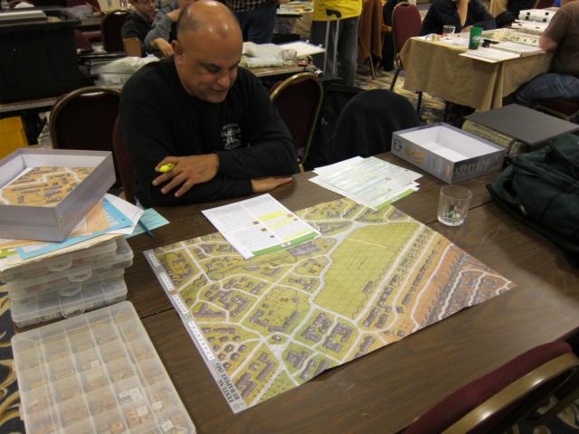 | ASLer Gary Trezza contemplates the contents of Festung Budapest. Sure, the map is pretty, but it’s no Board 9. |