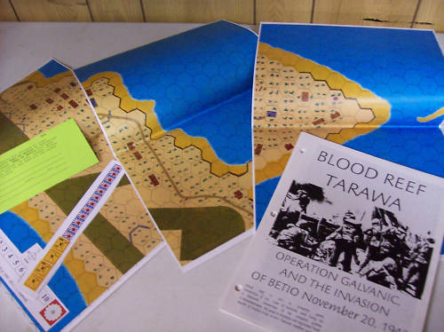 Heat of Battle’s BR contained 8 scenarios, 2 of which used geomorphic mapboards (BR1, A Piece of Folly, and BR2, Damn Army) and 6 that used the historical map (a map that was much less polished than the later MMP version). Of those 6 scenarios, the titles of 4 appear in the “official” Blood Reef Tarawa, but the scenarios generally have substantial differences. The 3 campaign games have 4, 8 and 12 campaign dates, respectively.
