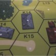 The BoBN map is a 16 hex by 26 hex map featuring generic “Normandy-style” terrain, with hedges, orchards and scattered buildings predominating. A few slopes are scattered around the map as well. The woods hexes are primarily “stamped” terrain–several pre-created woods images used over and over again, recognizable by their distinct features. The shellhole hexes are also stamps, with the identical “spread” of shellholes appearing time after time.
