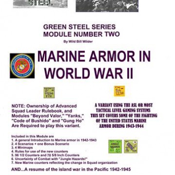 This is the second of a 3-part series of scenarios featuring USMC AFVs in World War II. It focuses on island fighting in the Central Pacific. It introduces “Japanese anti-tank teams and the US Marine Sniper-Scout,” as well as mysterious Jungle Hazards.