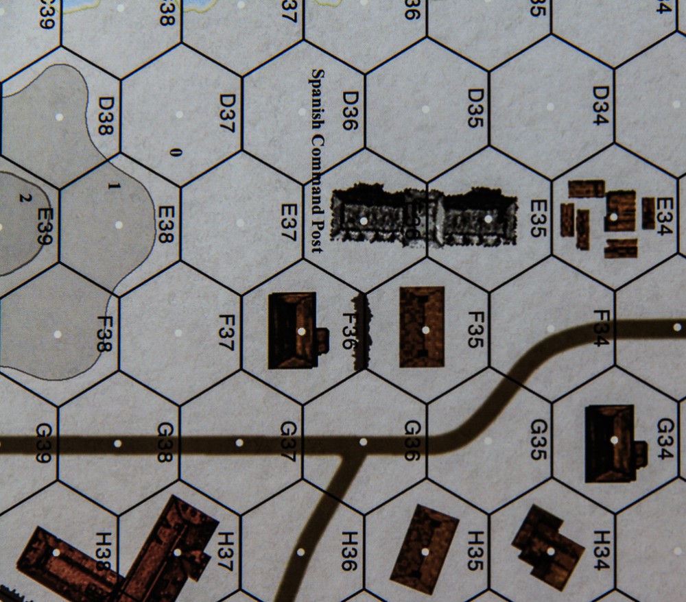 The module also includes 160 counters consisting of 2 sets of 80 (each set in 2 small sheets for 4 total). Although the marketing material on the back of Spanish Fury claims twice that there are 192 counters (in two sets of 96) and once that there are 224 counters, in actual fact, only 160 counters come with the game. These are all Spanish infantry counters (squads, half squads, leaders, and heroes), which are depicted in a two-tone (grey on blue) fashion. It is not clear why this is the case, as the units are identical to (and treated the same as) German units, and there are no scenarios featuring non-Blau units. It would seem that none of the counters are necessary to play any of the scenarios (the marketing material seems to suggest that Boat and Wagon counters are also included, but none were included in the copy used for this overview).